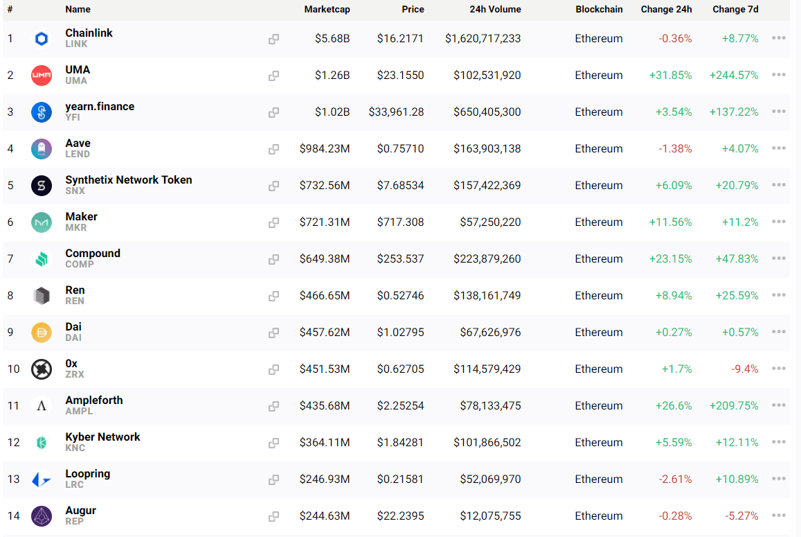 Ethereum is still the choice of blockchain among issuers. As per CryptoSlate’s data page, the top-15 DeFi tokens and projects operate on the Ethereum network and lock up billions of dollars.